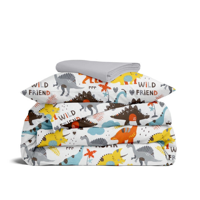 Підліткова постільна білизна з простирадлом на резинці DINOSAURS CS6