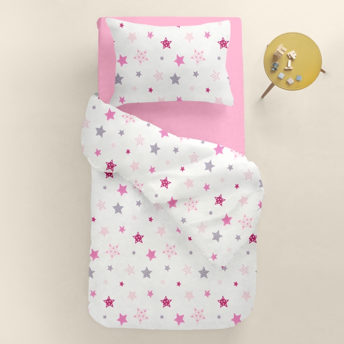 Підліткова постільна білизна з простирадлом на резинці PINK STARS