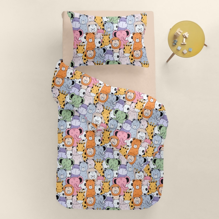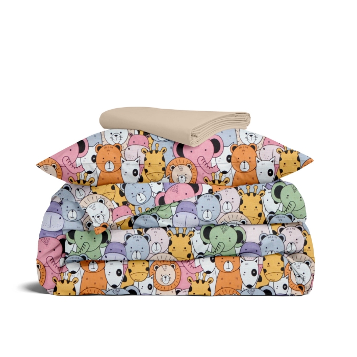 Підліткова постільна білизна з простирадлом на резинці SAFARI ANIMALS CS7