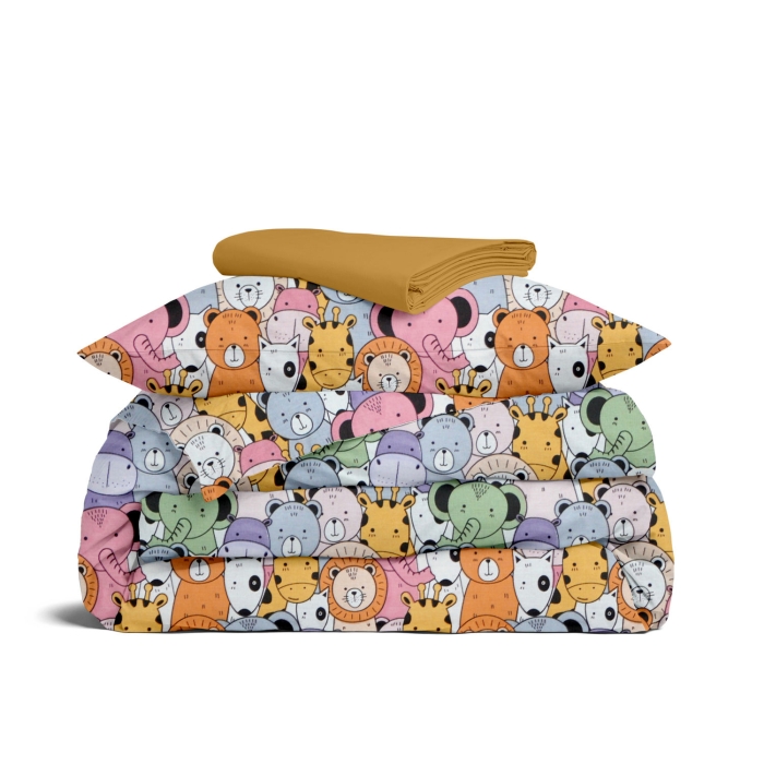 Підліткова постільна білизна з простирадлом на резинці SAFARI ANIMALS CS8