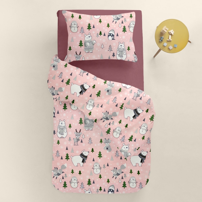 Підліткова постільна білизна з простирадлом на резинці WINTER ANIMALS CS5