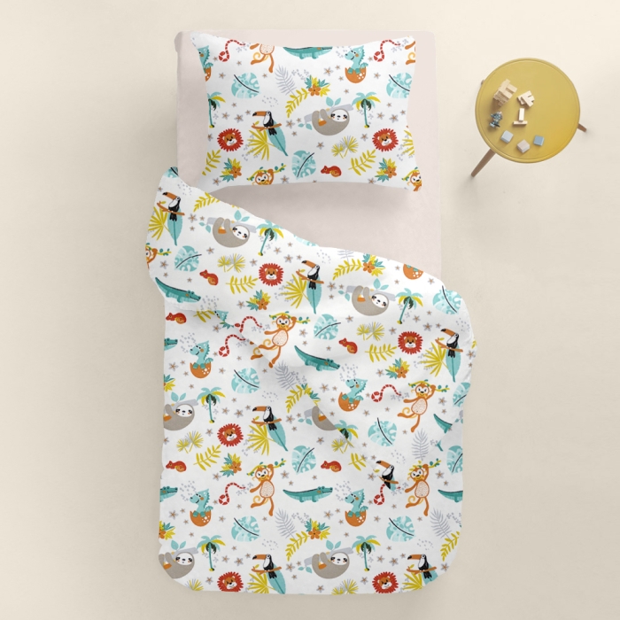 Постільна білизна дитяча полуторна COSAS виготовлена з 100% органічної бавовни, м'яка, приємна на дотик та безпечна для чутливої дитячої шкіри.