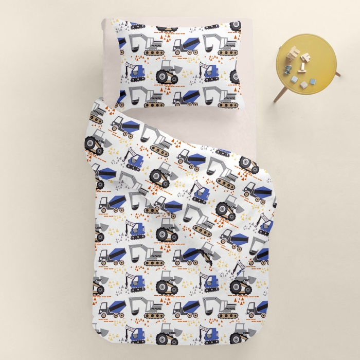 Підліткова постільна білизна з простирадлом на резинці BUILDER TRUCKS CS1