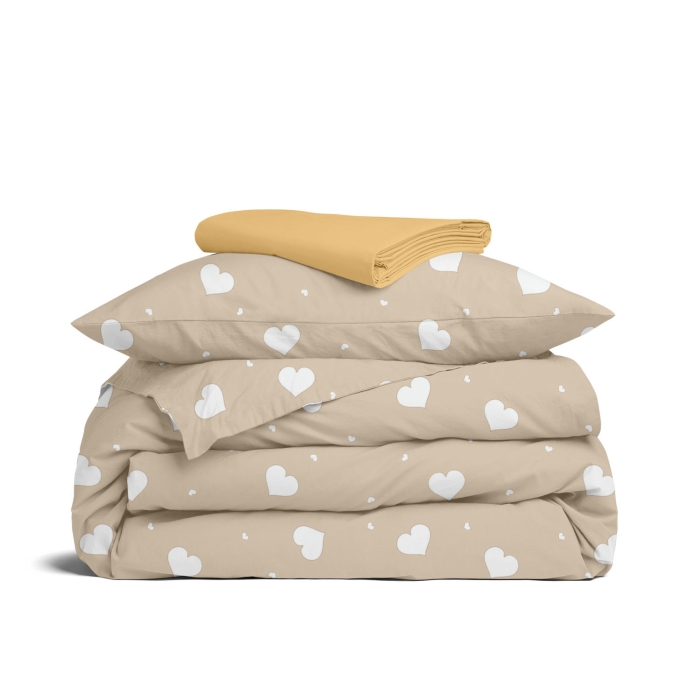 Підліткова постільна білизна з простирадлом на резинці CREAM HEARTS