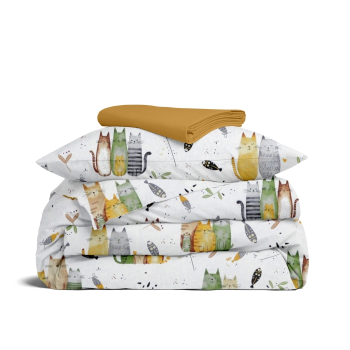 Підліткова постільна білизна з простирадлом на резинці FOREST CATS CS1