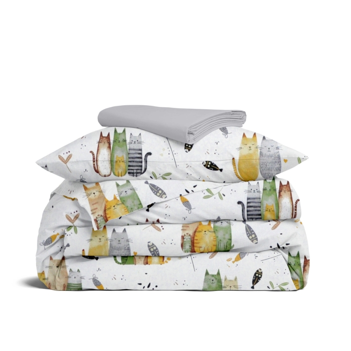 Підліткова постільна білизна з простирадлом на резинці FOREST CATS CS2