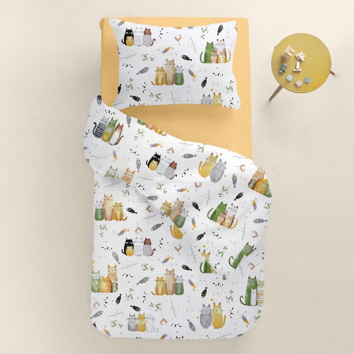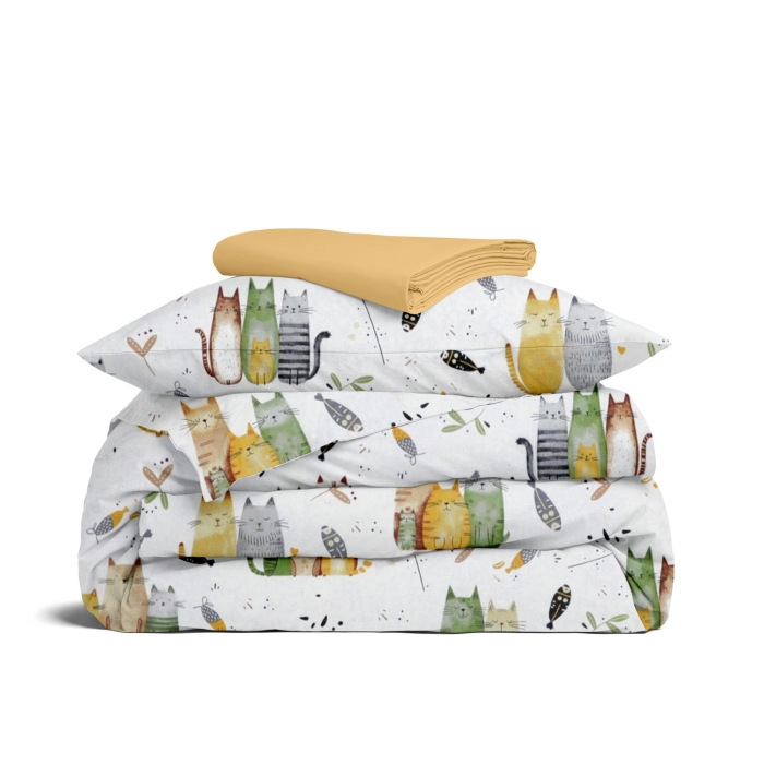 Підліткова постільна білизна з простирадлом на резинці FOREST CATS