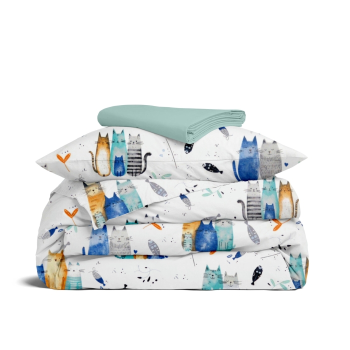 Підліткова постільна білизна з простирадлом на резинці HAPPY CATS CS1