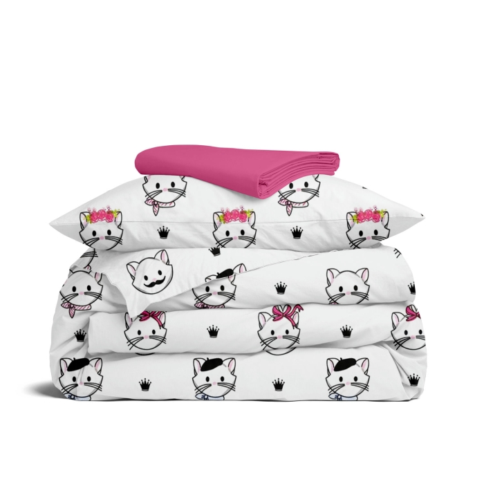 Підліткова постільна білизна з простирадлом на резинці PARIS CATS CS3