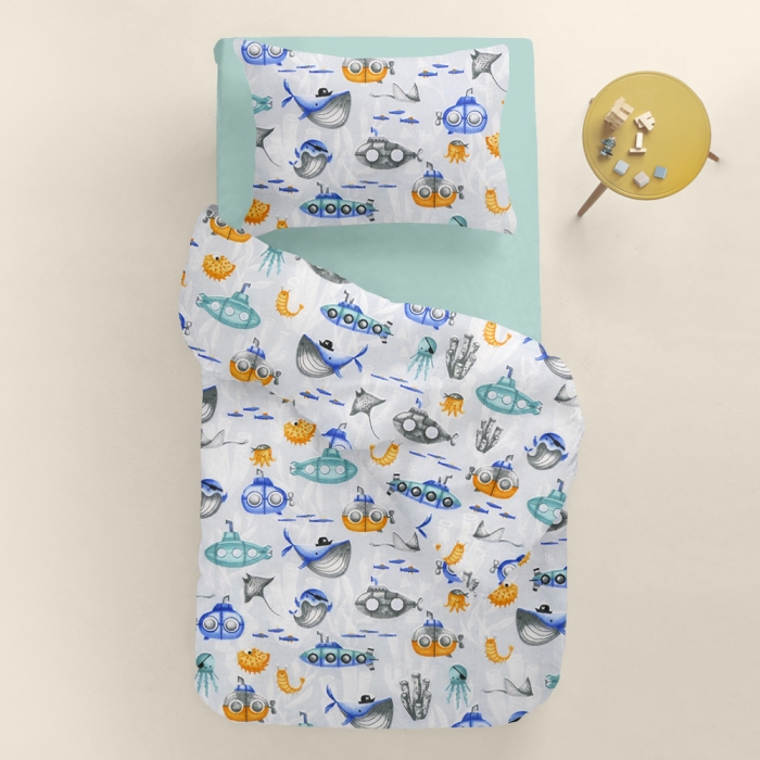 Підліткова постільна білизна з простирадлом на резинці SUBMARINE WORLD CS6