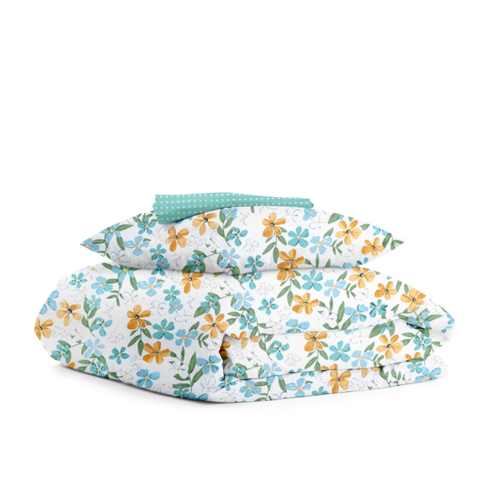 Підліткова постільна білизна з простирадлом на резинці MINT FLOWERS