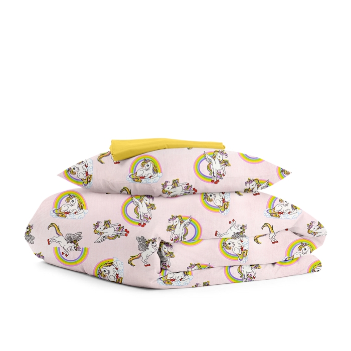 Підліткова постільна білизна з простирадлом на резинці RAINBOW UNICORN CS1