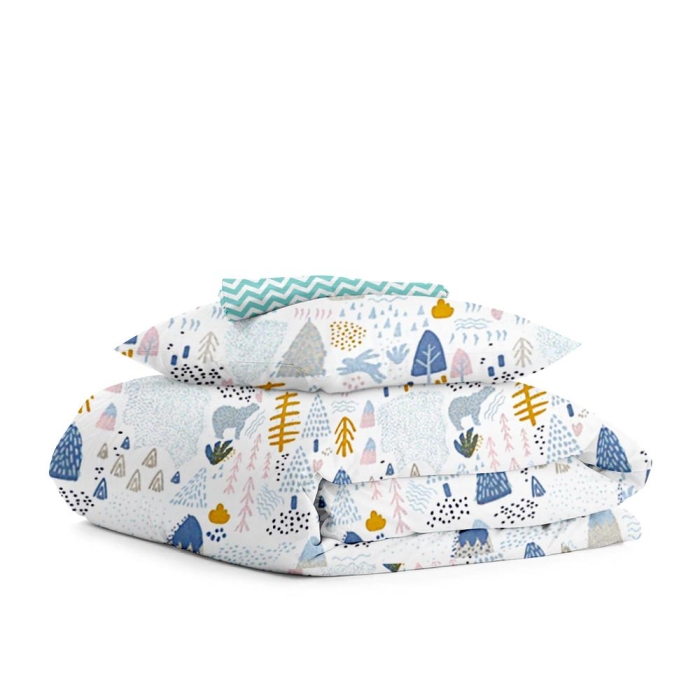 Постільна білизна дитяча полуторна COSAS виготовлена з 100% органічної бавовни, м'яка, приємна на дотик та безпечна для чутливої дитячої шкіри.