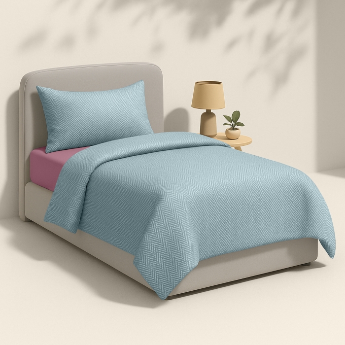 Цей комплект поєднує дві преміум тканини — фактурний Армур і варену бавовну, щоб подарувати підлітку відчуття м’якості, затишку та справжнього комфорту щоночі.