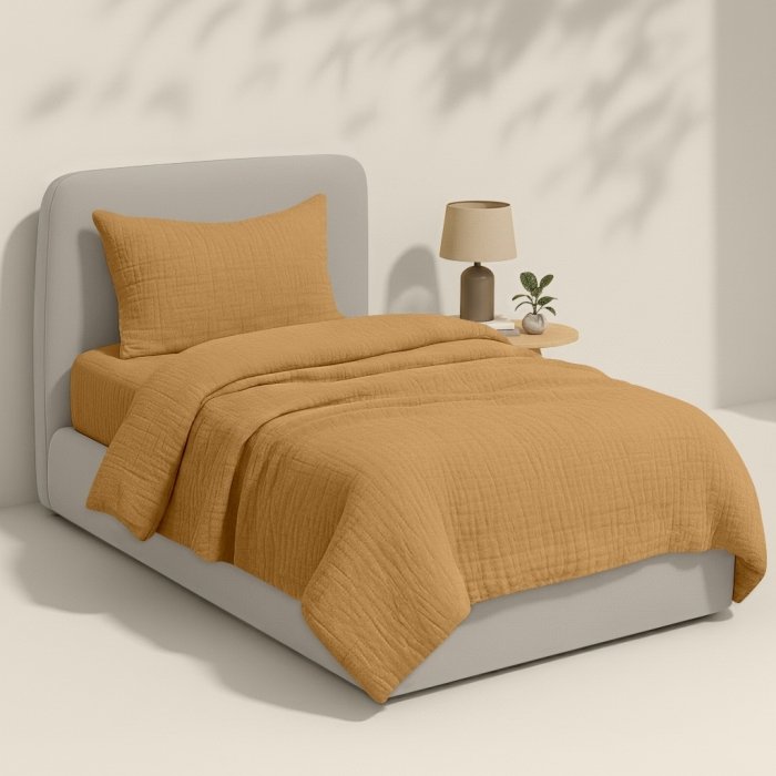 Підліткова постільна білизна муслін з простирадлом на резинці MUSTARD