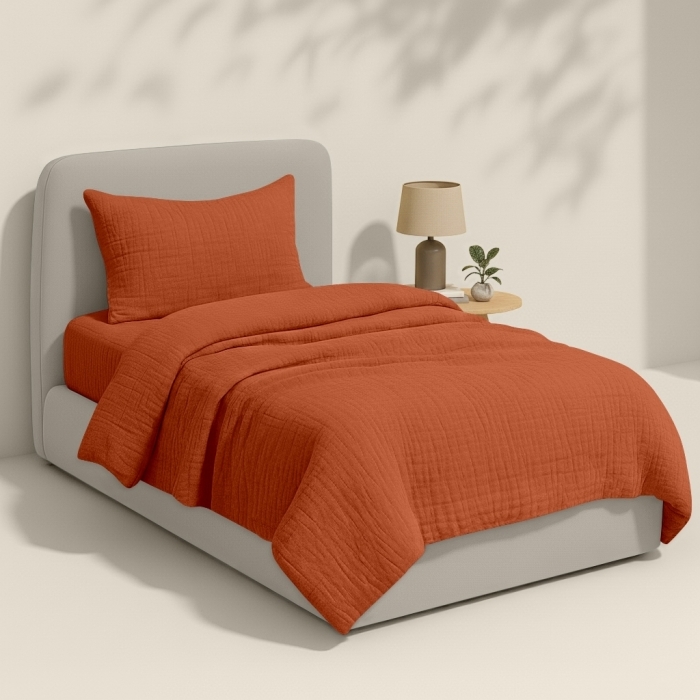 Підліткова постільна білизна муслін з простирадлом на резинці TERRAKOT CS1