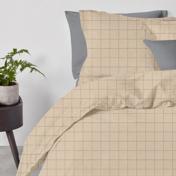 Полуторна постільна білизна з простирадлом на резинці BEIGE GEOMETRY CS1