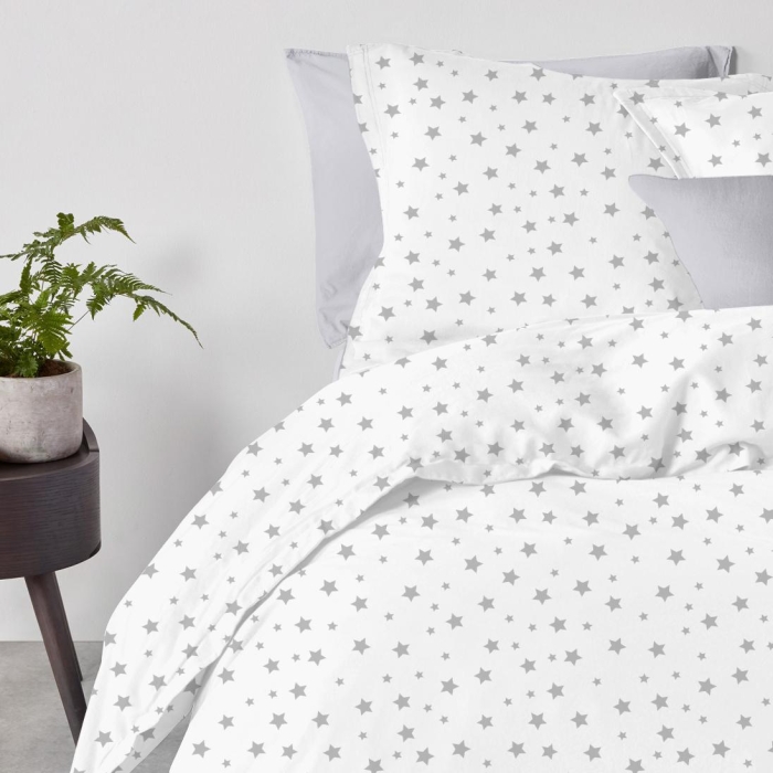 Полуторна постільна білизна з простирадлом на резинці GREY STARS CS1