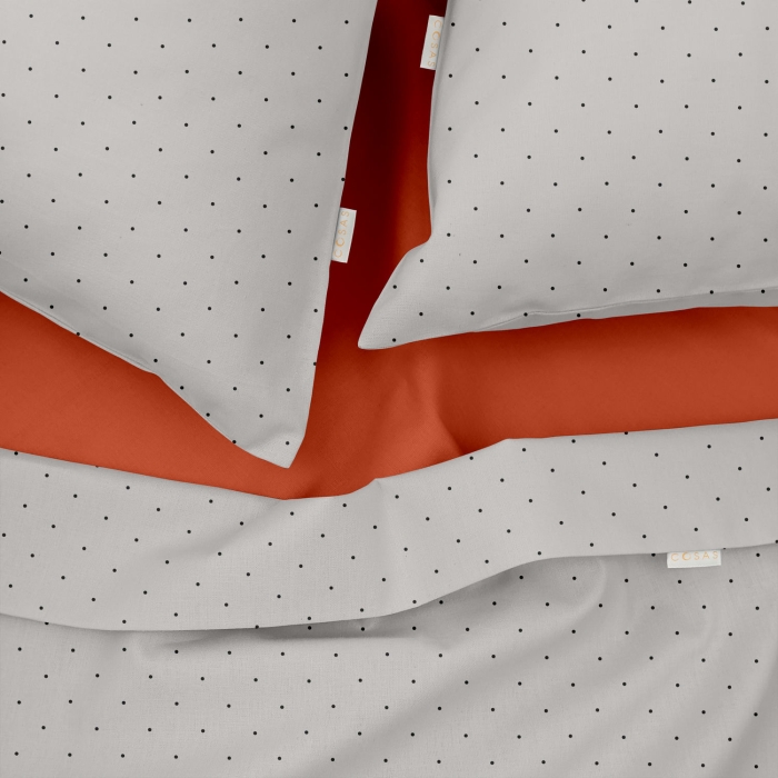 Теги: полуторка, постіль півтораспальна, постіль 1.5 розмір, постіль полуторка, полуторка розміри, постіль півтораспальна, постільна білизна півтораспальна, постіль 1.5, півтораспальна постіль доросла, постель полуторная, полуторная постель, постель взрослая полуторная, Однотонний помаранчевий ранфорс T 103, Бежевий, Горохи, Ранфорс, 160х220 см, Полуторна постільна білизна з простирадлом на резинці MINI DOTS