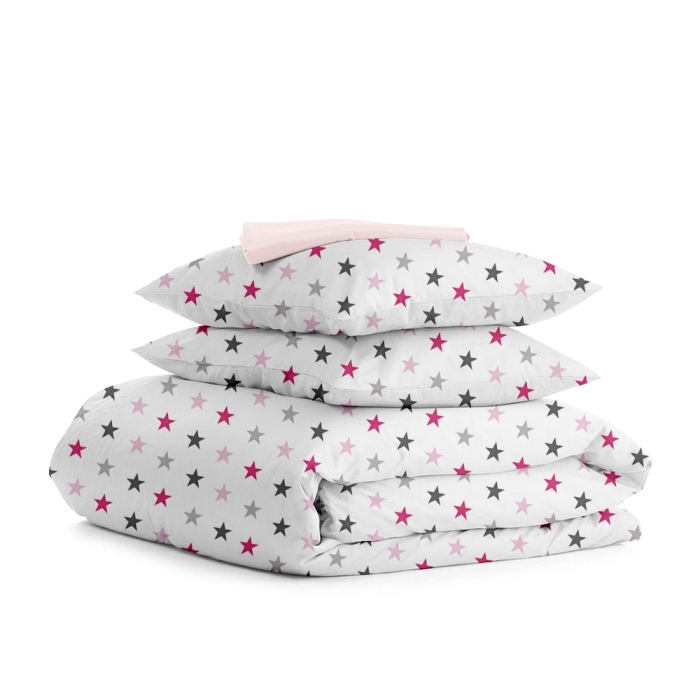 Теги: полуторка, постіль півтораспальна, постіль 1.5 розмір, постіль полуторка, полуторка розміри, постіль півтораспальна, постільна білизна півтораспальна, постіль 1.5, півтораспальна постіль доросла, постель полуторная, полуторная постель, постель взрослая полуторная, Однотонний світло-рожевий ранфорс 40 T, Рожевий, Зорі, Ранфорс, 160х220 см, Полуторна постільна білизна з простирадлом на резинці ROSE STAR