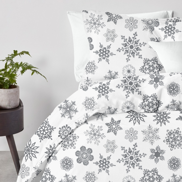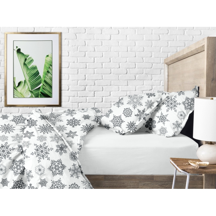 Полуторна постільна білизна з простирадлом на резинці SNOWFLAKES