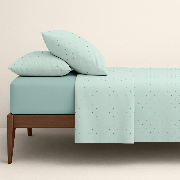 Теги: Постільна білизна 1.5 / полуторка від Виробника ТМ COSAS. Стильне Ліжко та Комфортний Сон! Простирадла на Резинці та без. Подарункова Коробка., , Аквамарин, Горохи, Ранфорс, 160х220 см, Полуторна постільна білизна з простирадлом на резинці MINTICE