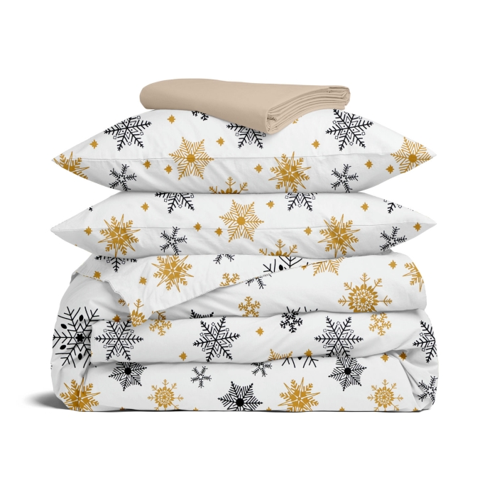 Полуторна постільна білизна фланель з простирадлом на резинці SNOWFLAKES CS4