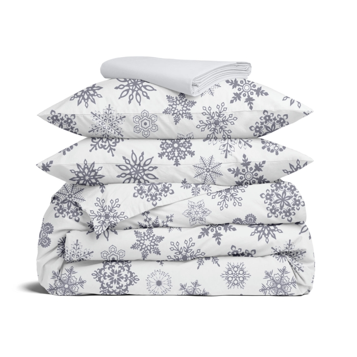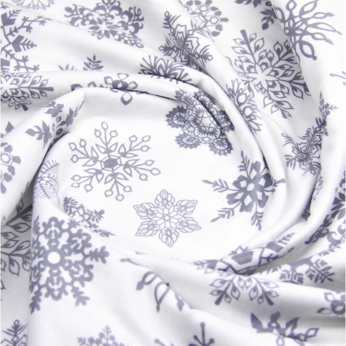 Полуторна постільна білизна фланель з простирадлом на резинці SNOWFLAKES