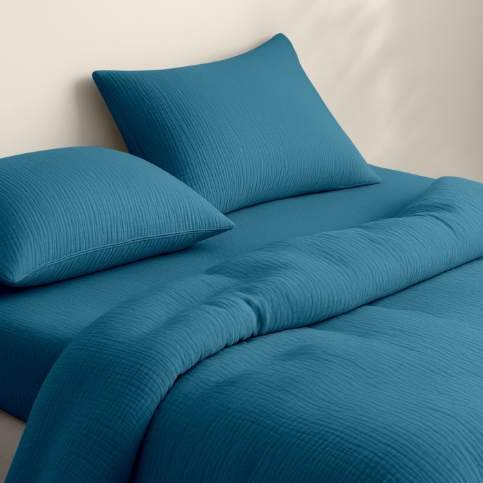 Полуторна постільна білизна з 4-шарового мусліну COSAS — запорука здорового сну.