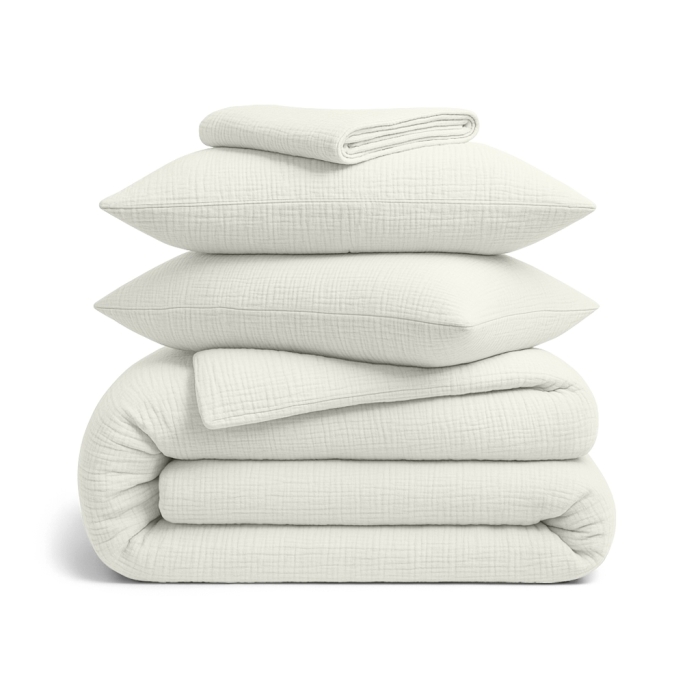 Полуторна постільна білизна з 4-шарового мусліну COSAS — запорука здорового сну.