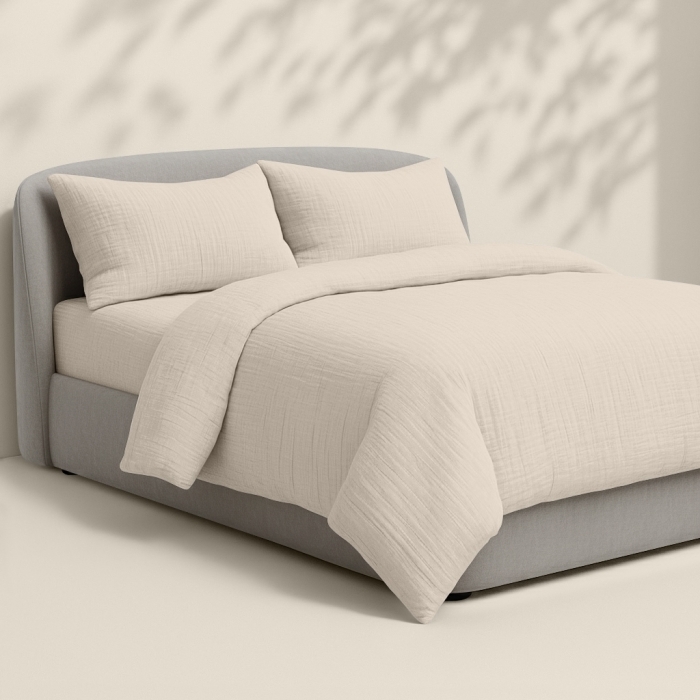 Комплект створений для відчуття м’якості, затишку та природного комфорту щоночі, поєднуючи естетику натурального текстилю з практичністю щоденного використання.