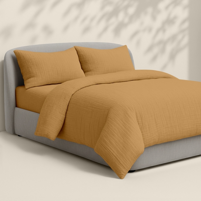 Сімейна преміум постільна білизна муслін з простирадлом на резинці MUSTARD CS1