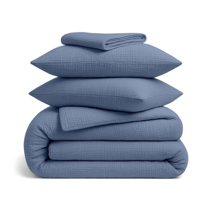 Сімейний комплект постільної білизни на резинці COSAS з 4-шарового мусліну — запорука здорового та комфортного сну.