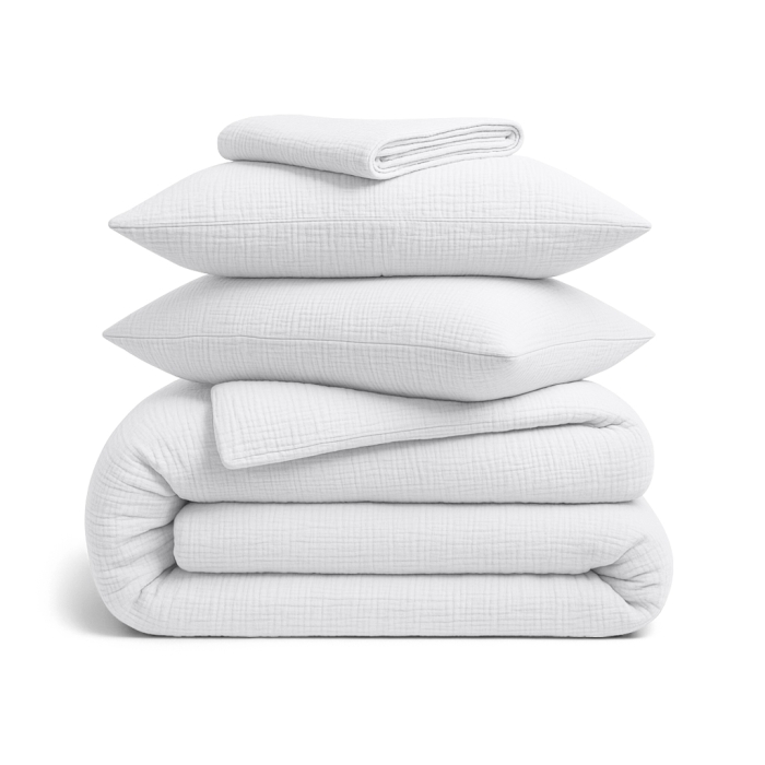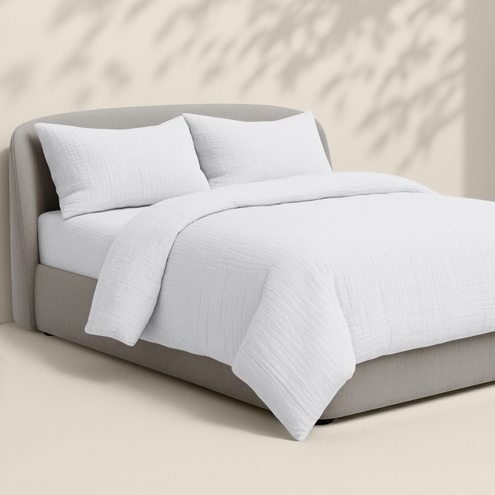 Сімейний комплект постільної білизни на резинці COSAS з 4-шарового мусліну — запорука здорового та комфортного сну.