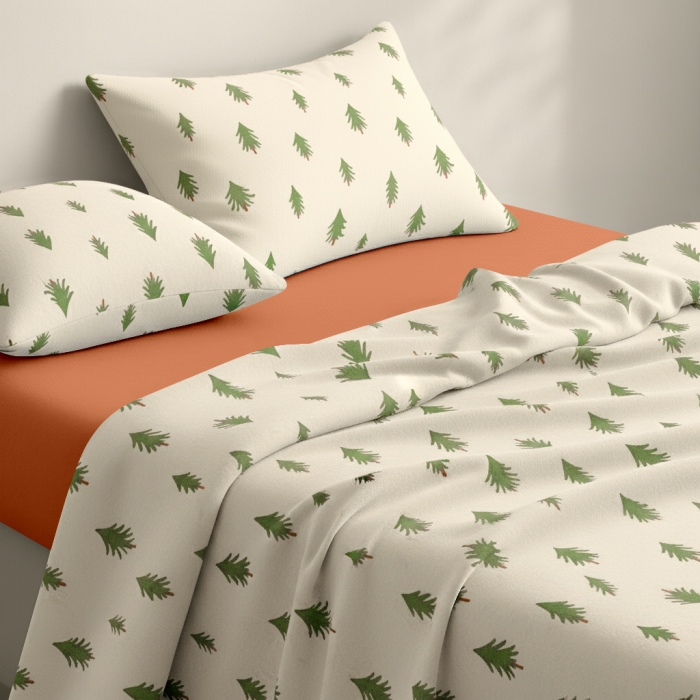 Сімейний комплект фланель з простирадлом на резинці PINE FOREST CS4