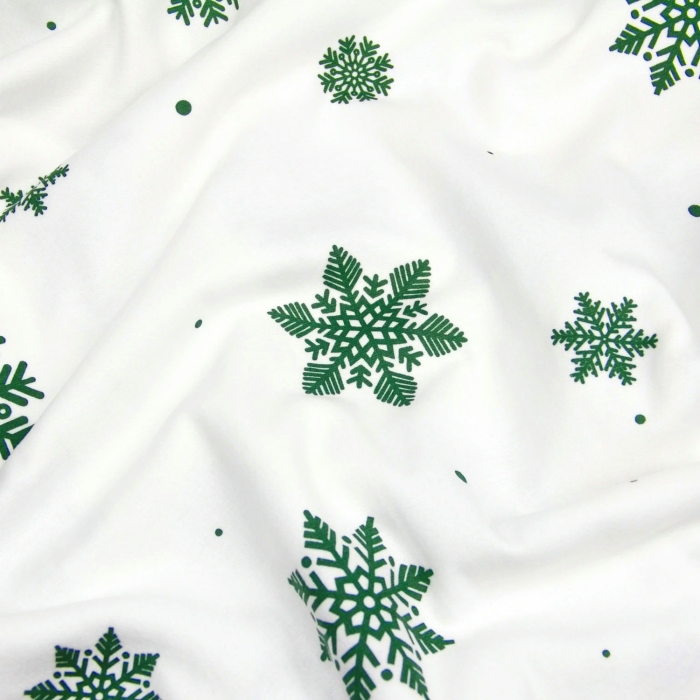 Сімейний комплект фланель з простирадлом на резинці SNOWFLAKES EVERGREEN CS1