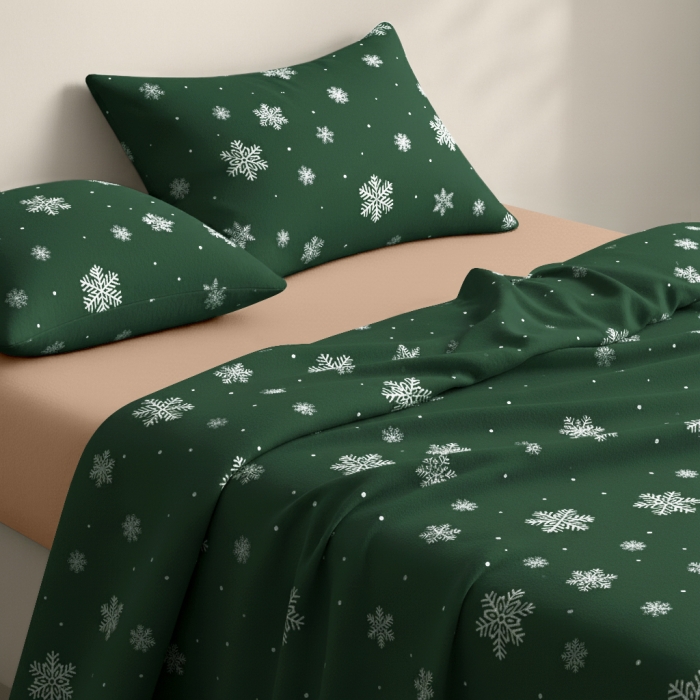 Сімейний комплект фланель з простирадлом на резинці SNOWFLAKES FOREST CS1