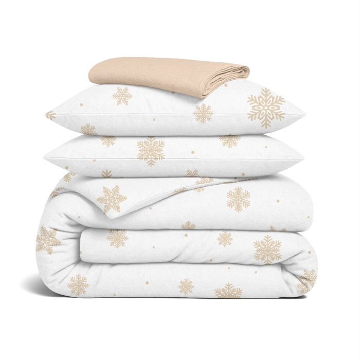 Сімейний комплект фланель з простирадлом на резинці SNOWFLAKES GOLD CS2