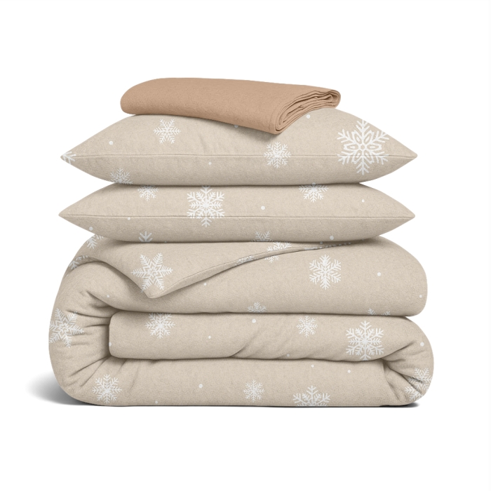 Сімейний комплект фланель з простирадлом на резинці SNOWFLAKES LATTE CS3