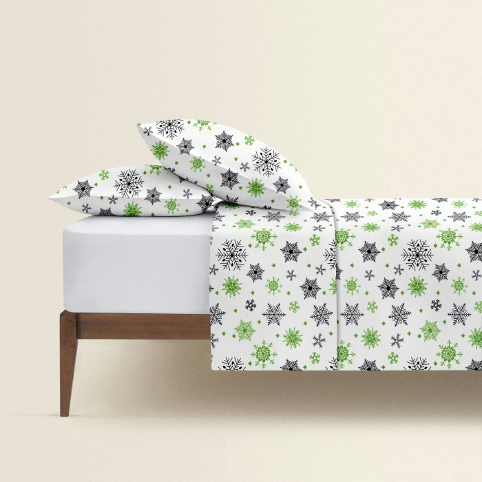 Сімейна постільна білизна з простирадлом на резинці SNOWFLAKES CS1