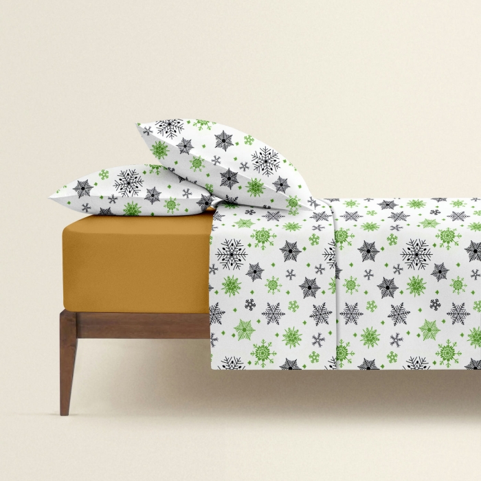 Сімейна постільна білизна з простирадлом на резинці SNOWFLAKES CS2