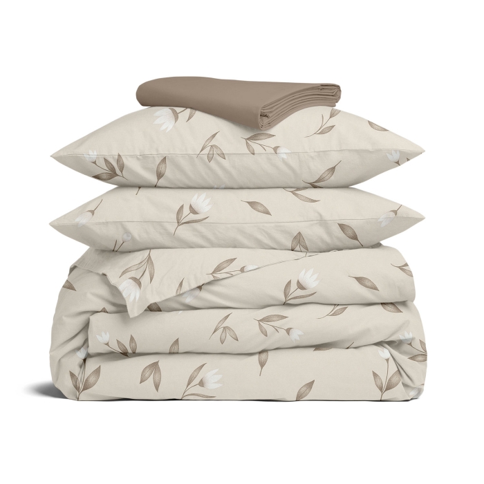 Сімейна постільна білизна з простирадлом на резинці BEIGE FLORAL CS2