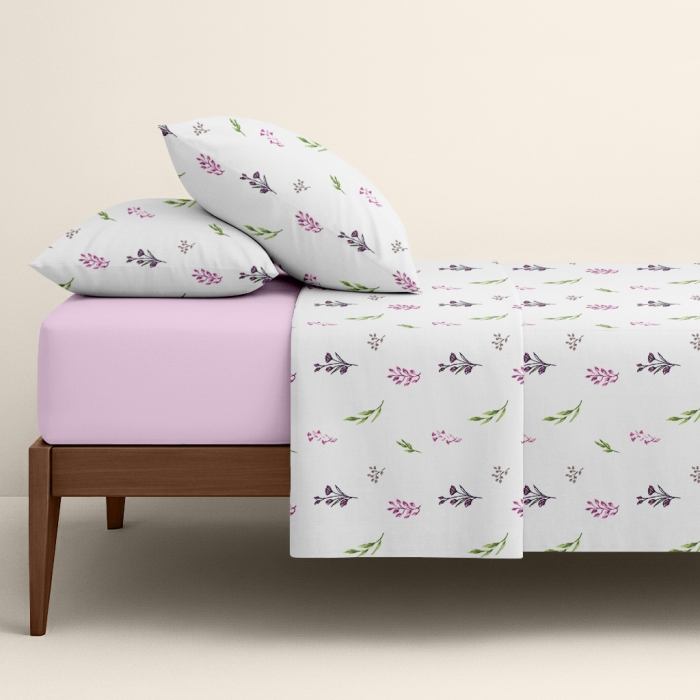 Сімейна постільна білизна з простирадлом на резинці LAVENDER MOOD CS4
