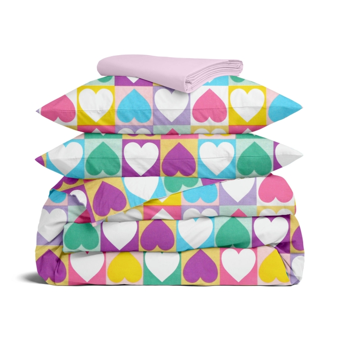 Сімейна постільна білизна з простирадлом на резинці LOVE PUZZLE