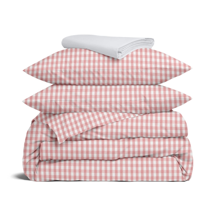 Сімейна постільна білизна з простирадлом на резинці PINK CHECK CS1