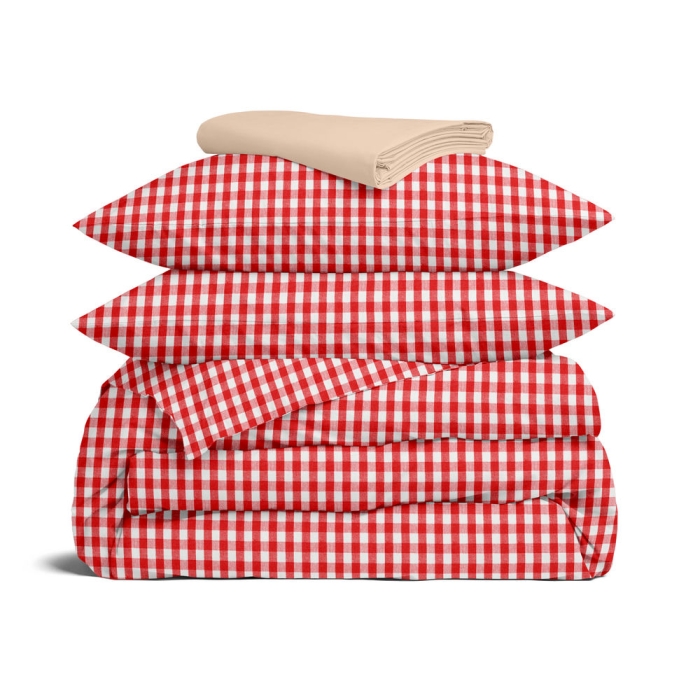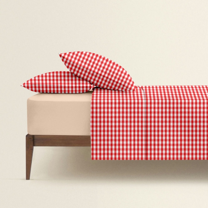 Сімейна постільна білизна з простирадлом на резинці RED CHECK