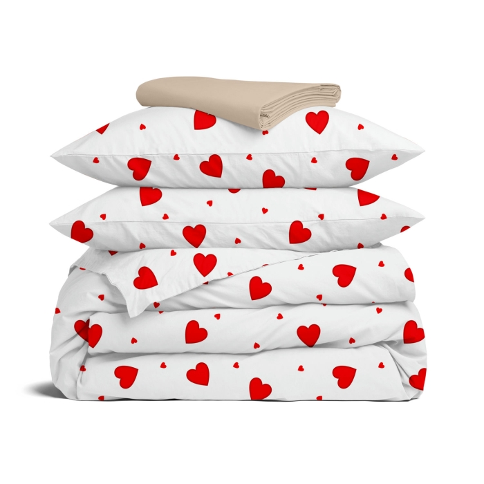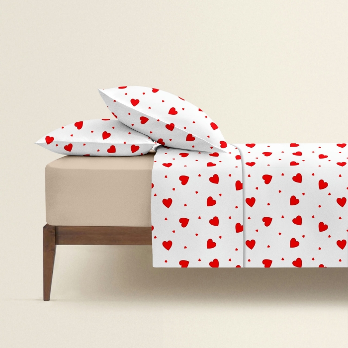 Сімейна постільна білизна з простирадлом на резинці RUBY HEARTS