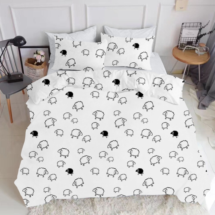 Сімейна постільна білизна з простирадлом на резинці SHEEP BLACK CS4