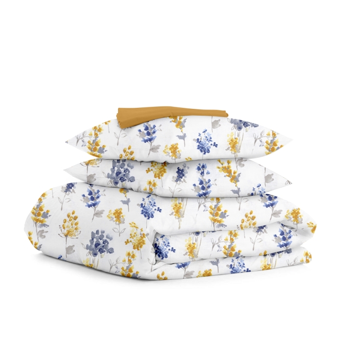 Сімейна постільна білизна з простирадлом на резинці WATERCOLOR FLOWERS
