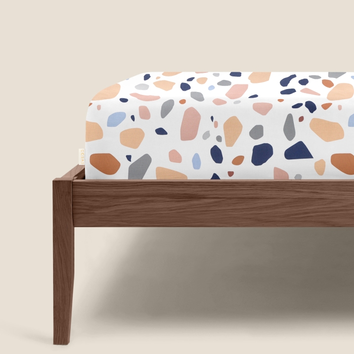 Односпальне простирадло на резинці COSAS 90х200 см виготовлене з 100% органічної бавовни, що робить його м'яким, приємним на дотик та безпечним для людей з чутливою шкірою.